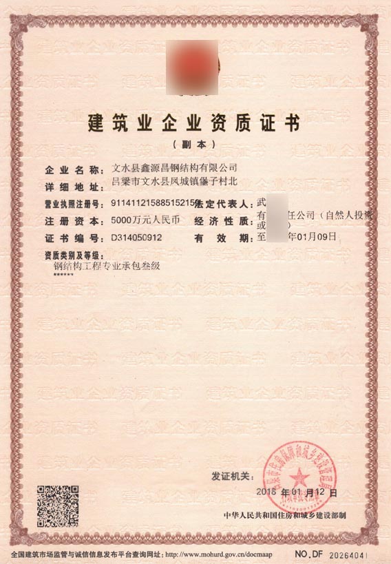 平遙某古建筑公司古建筑工程專業承包一級資質